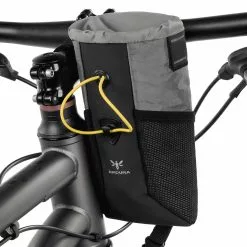 Der Inhalt der Lenkertasche kann ganz bequem vom Sattel aus mit nur einer Hand bedient werden. Die robuste Verarbeitung macht sie zu einem idealen Begleiter fĂŒr den Pendler als auch fĂŒr den Bikepacker auf Urlaubstour.